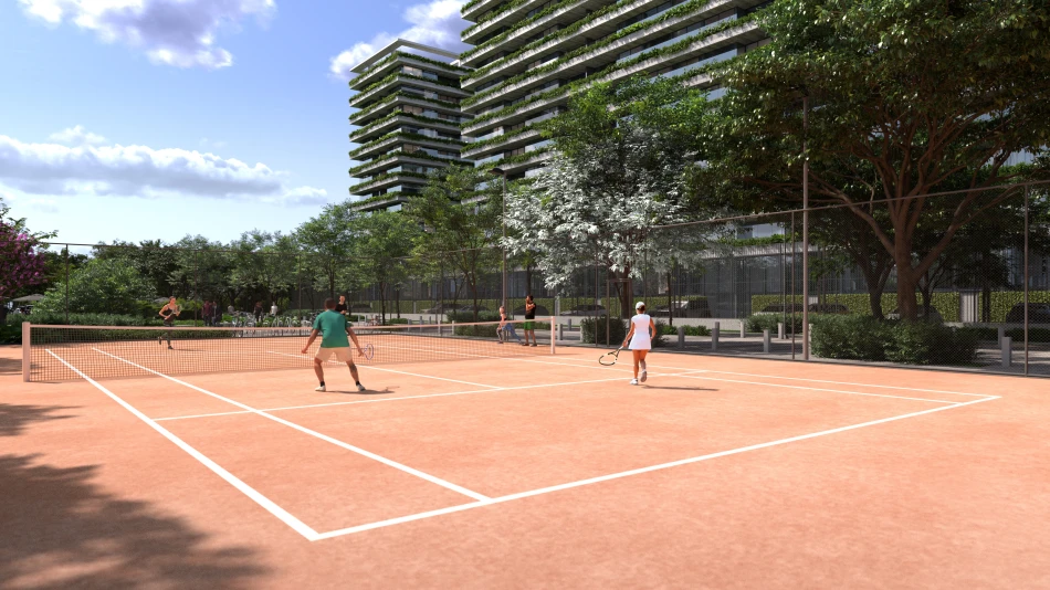 *Referente à unidade 204 do bloco 4. As imagens contidas neste material são representações artísticas e virtuais, tratando-se todas de perspectivas meramente ilustrativa. Todos os elementos nestas imagens poderão ser, total ou parcialmente, alterados ou suprimidos sem aviso ou comunicação prévia. A interpretação destas imagens por parte de quem as observa não gera para os idealizadores do negócio nenhuma espécie de obrigação ou responsabilidade. Os idealizadores do negócio são, ainda, livres para alterar qualquer perspectiva contida nestas imagens, podendo, inclusive, decidir não desenvolver nenhum outro negócio em nenhuma das outras quadras. As informações visuais contidas neste material são ilustrativas e não se configuram como parte integrante de qualquer instrumento legal. Todas essas imagens representam ilustrações artísticas, que desconsideram os elementos já construídos e a vegetação existente no entorno. A vegetação representada nas imagens também é uma perspectiva artística e virtual, podendo ser alterada de qualquer forma pelos idealizadores do negócio. A representação do pórtico, das vias e da circulação previstas nestas imagens são, igualmente, perspectivas artísticas que poderão ser alteradas sem aviso prévio. Responsável Técnico: Valmir Menditi Calegario – CREA-RJ: nº 2005111884, atividades técnicas de construção, execução de instalação e de obra, edificação residencial e hidrossanitária. Projeto de Arquitetura: Carlos Jose Ferreira de Abreu e Lima – CAU-RJ: nº A18375-0, atividade técnica de projeto arquitetônico.
